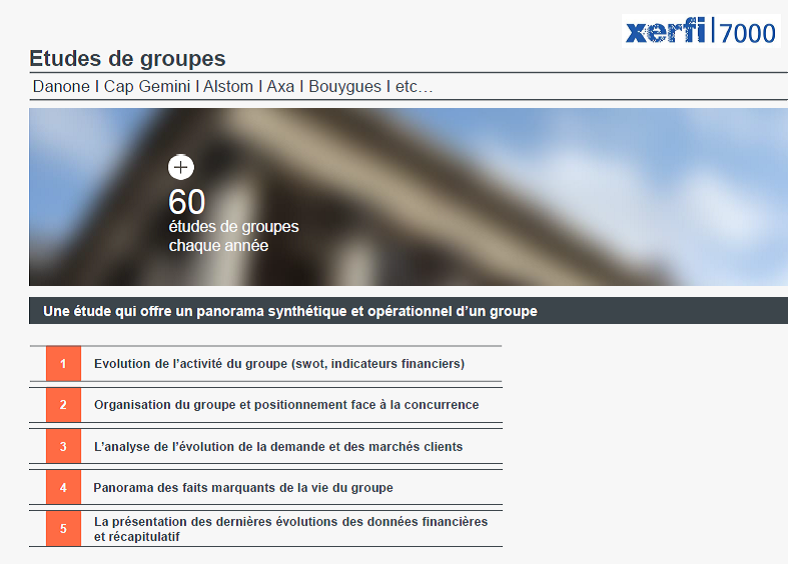 | Xerfi 7000 | >1000 Euros | 60% | >400 Euros |